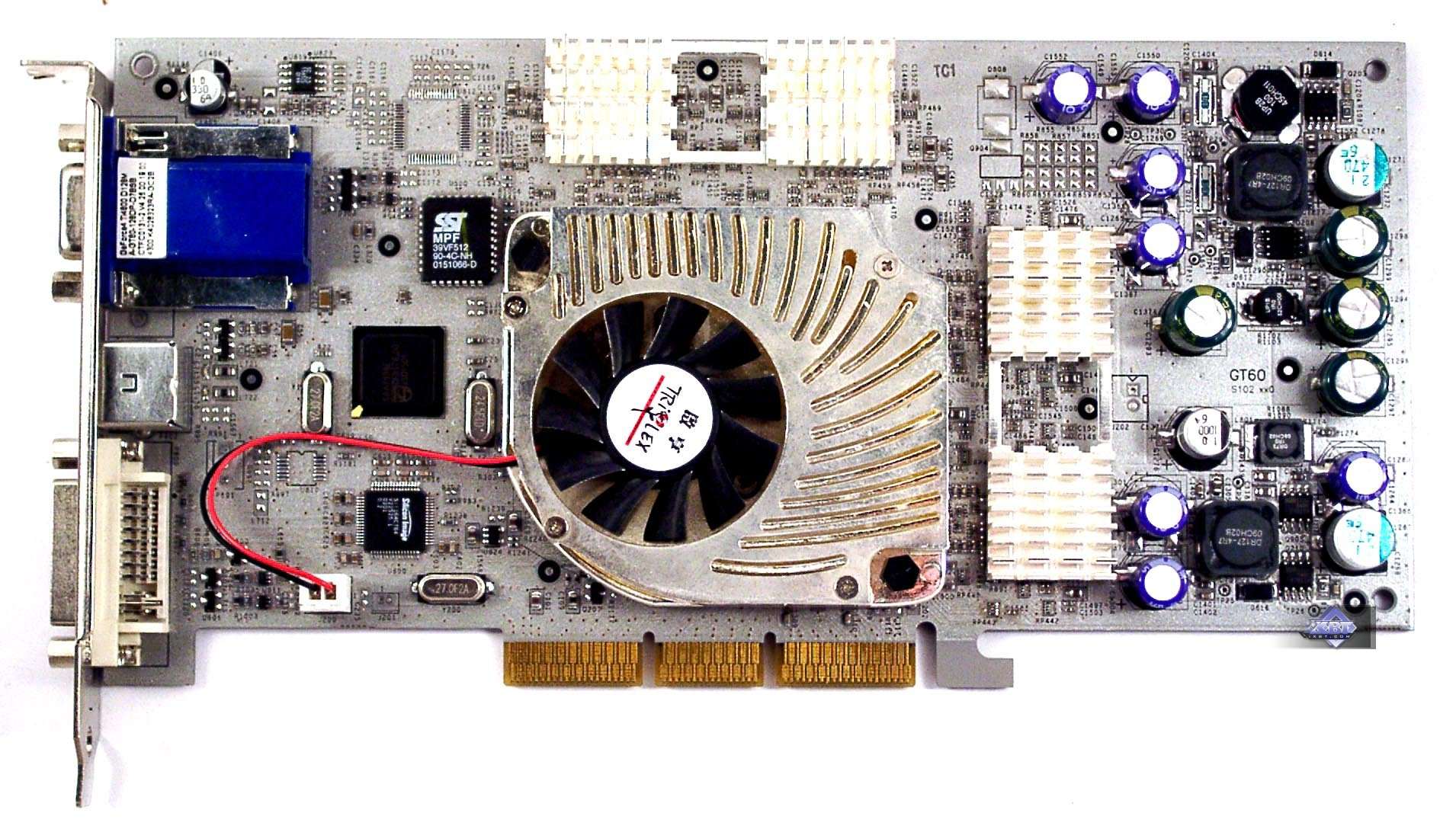 | Leadtek WinFast A360/TD 128MB 128bit, 425/275 (550) MHz (4 пиксельных конвейера с 1-им текстурным блоком на каждом, до 16 текстур за проход, поддержка DirectX 9.0, шейдерная модель версии 2.0+, блок аппаратной обработки геометрии и освещения базируется на трех вершинных конвейерах) |  |