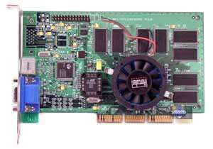 | Reference card PowerVR (Imagination Tech.) KYRO 64MB SDR 128bit, 115/115 MHz (2 пиксельных конвейера с 1-им текстурным блоком на каждом, тайловая архитектура, имеется возможность обработки до 8 текстур за проход, блок аппаратной обработки геометрии и освещения отсутствует) |  |