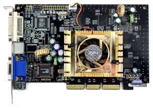 | Gigabyte GeForce2 MX200 32MB SDR 64bit, 175/166 MHz (2 пиксельных конвейера с 2-мя текстурными блоками на каждом, имеется блок аппаратной обработки геометрии и освещения) |  |