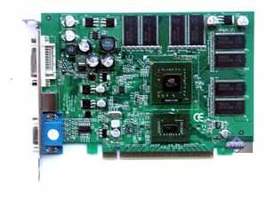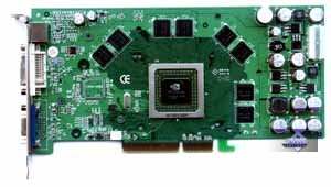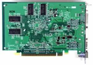 | Карта имеет интерфейс AGP x8/x4, 128 МБ памяти DDR SDRAM размещенной в 8-ми микросхемах на лицевой стороне PCB. Микросхемы памяти Hynix. Время выборки у микросхем памяти 2.5 ns, что соответствует частоте работы 400 (800) МГц, память же работает на частоте 350 (700) МГц. Частота работы GPU 325 MHz. Шина обмена с памятью — 256 bit. Число пиксельных конвейеров x число текстурников — 12x1 (4х3). Число вершинных конвейеров — 5. | ![]() |
