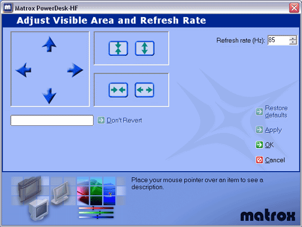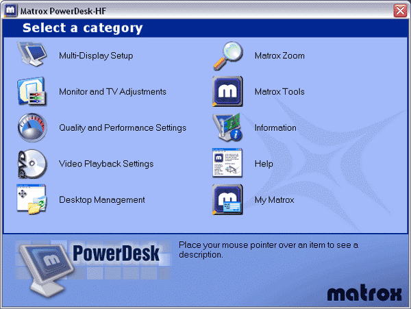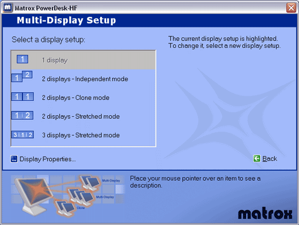 - Возможность вывода одного изображения, растянутого на два или даже три (!) приемника. Например, на 2 встроенных и один внешний RAMDAC или на оба встроенных RAMDAC и TV-Out. Суммарное разрешение в тройном режиме до 3840x1024x32bpp. Технологии TripleHead Desktop, Surround Gaming и DualHead-HighFidelity (HF) (Есть!)
