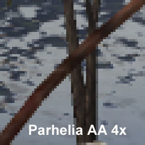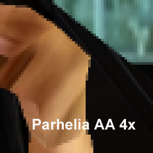 Однако столь интеллектуальный метод AA способен в некоторых случаях вызывать артефакты. Кроме того, он не может корректно обрабатывать сглаживание границ, перемешаных с полупрозрачными полигонами (например облака, туман, стекла, огонь в играх). Пользователь может переключиться на хорошо знакомый классический 4х (2х2) MSAA, также поддерживаемый чипом.