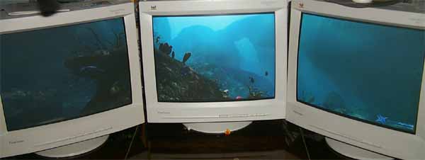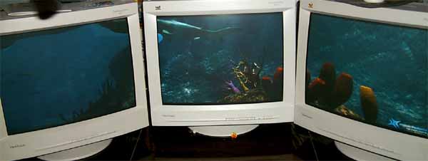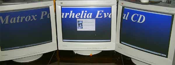- Ну и, конечно же, возможности в 2D и технологии вывода изображения на три приемника. Это действительно где-то сенсация, пусть и для очень узкого круга пользователей (мало кто может позволить себе заиметь три LCD-монитора для получения такого эффекта). Параллельно с этим отметим, что все наработки Matrox в плане TV-out вместились в новом продукте, и для вывода картинки на ТВ Parhelia просто незаменима (разумеется, для тех, кто способен выложить $400 за подобную карту).