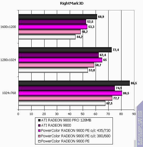 - Результаты тестов R9800PE: RightMark 3D