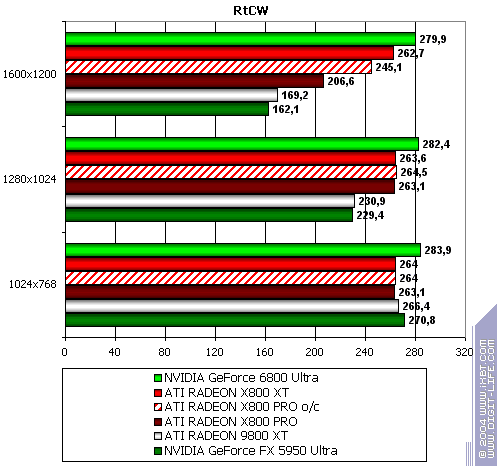 - Return to Castle Wolfenstein (MultiPlayer) (id Software/Activision) OpenGL, мультитекстурирование, ixbt0703-demo, настройки тестирования все на максимально возможном уровне, S3TC OFF, конфигурации можно скачать тут