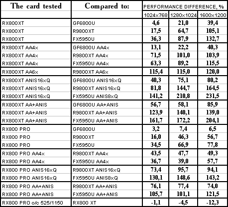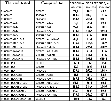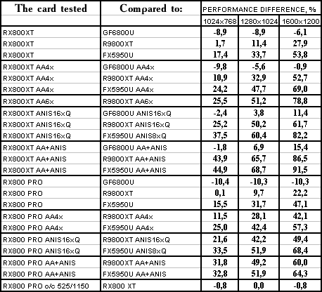 - ATI RADEON X800 PRO (против предыдущих решений) могло быть и лучше :-), но все же 22% тоже неплохо.
