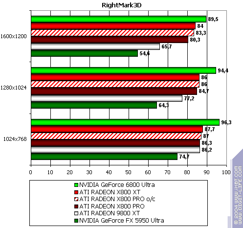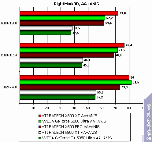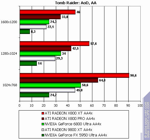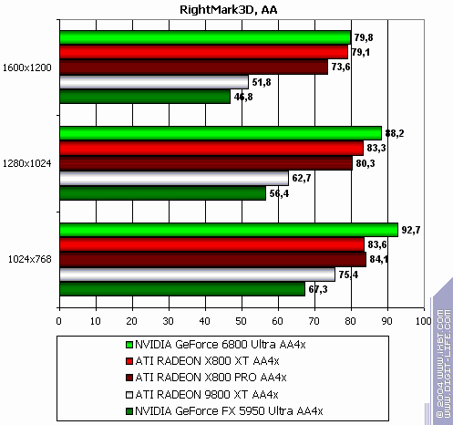 - ATI RADEON X800 XT (против NVIDIA GeForce 6800 Ultra) небольшая победа, но все же почти паритет