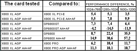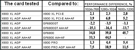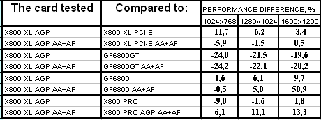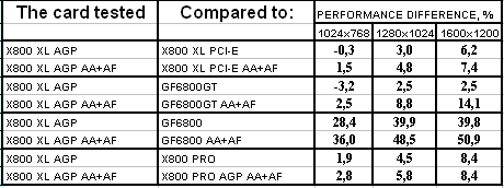 Ситуация аналогичная. Хотя надо сказать, что разница платформ внесла некоторые колебания дельты скоростей между X800 XL AGP и X800 XL PCI-E.