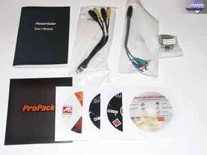 | Руководство пользователя, CD с драйверами, комплект ПО (богатый набор от Cyberlink и игра Hitman), переходники DVI-to-d-Sub, HDTV, VIVO. | ![]() |