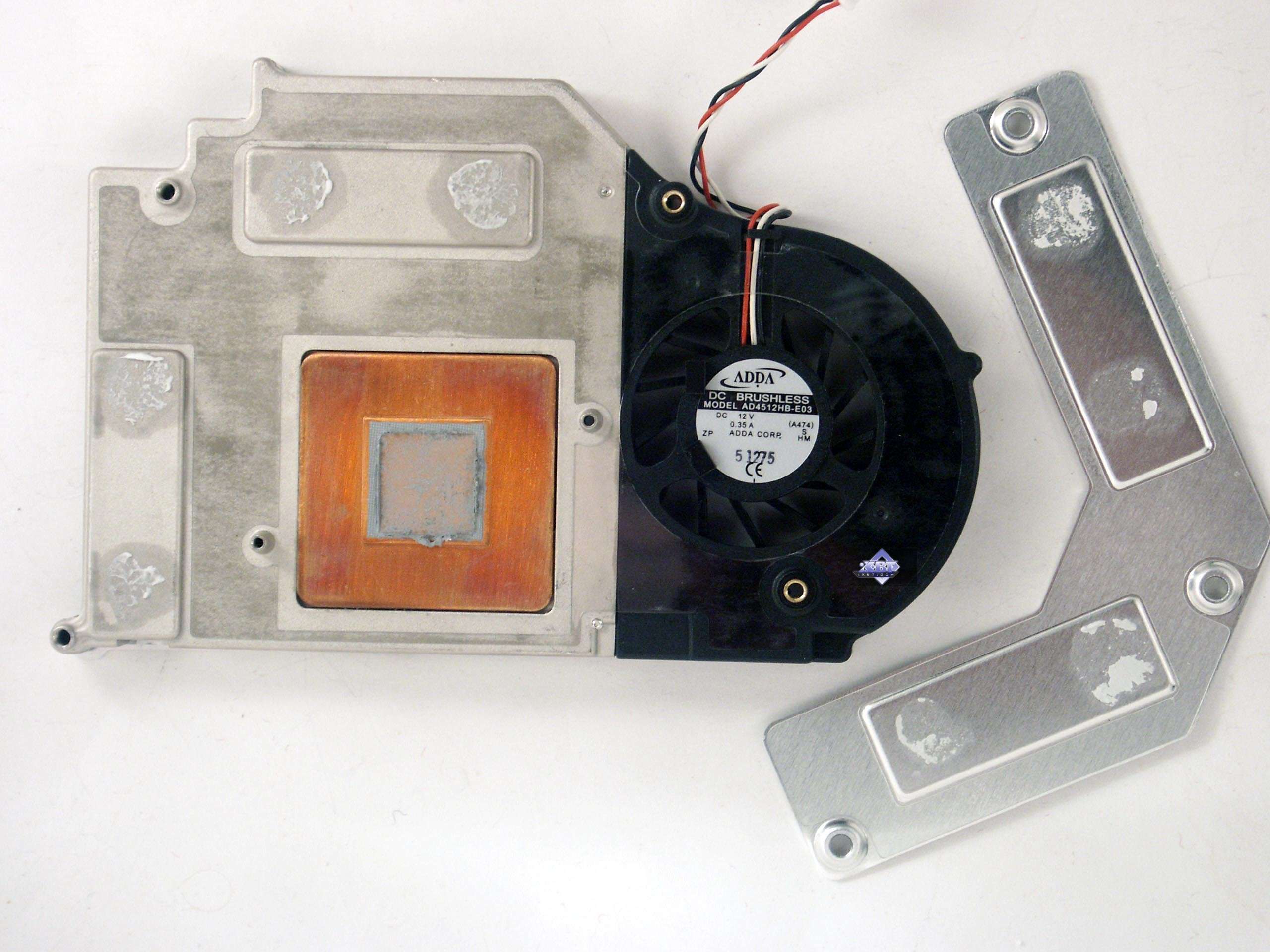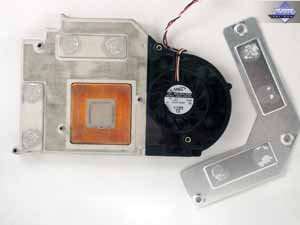 Радиатор закрытого типа со смещенным влево вентилятором, который гонит воздух по радиатору над GPU. Воздух засасывается внутри системного блока и туда же выбрасывается, но это не сильно снижает эффективность, поскольку нагрев не настолько велик (ядро по 0.11 мкм техпроцессу, да и частоты не слишком высоки). Сердечник, прижимаемый к ядру, выполнен из медного сплава. Микросхемы памяти на лицевой стороне также охлаждаются тем же кулером, на оборотной стороне — отдельной специальной пластиной. Внутри кулера установлен вентилятор с тахометром, и поэтому частота вращения меняется от 2500 до 5000 оборотов в минуту, в зависимости от нагрева. Шума при старте карт нет. Посмотреть видеоролик и оценить шум при старте системного блока можно по этой ссылке (1,1 МB, AVI DivX 5.1). А также сравнить с фоновым шумом без видеокарты (740 KB, AVI DivX 5.1). | ![]() |