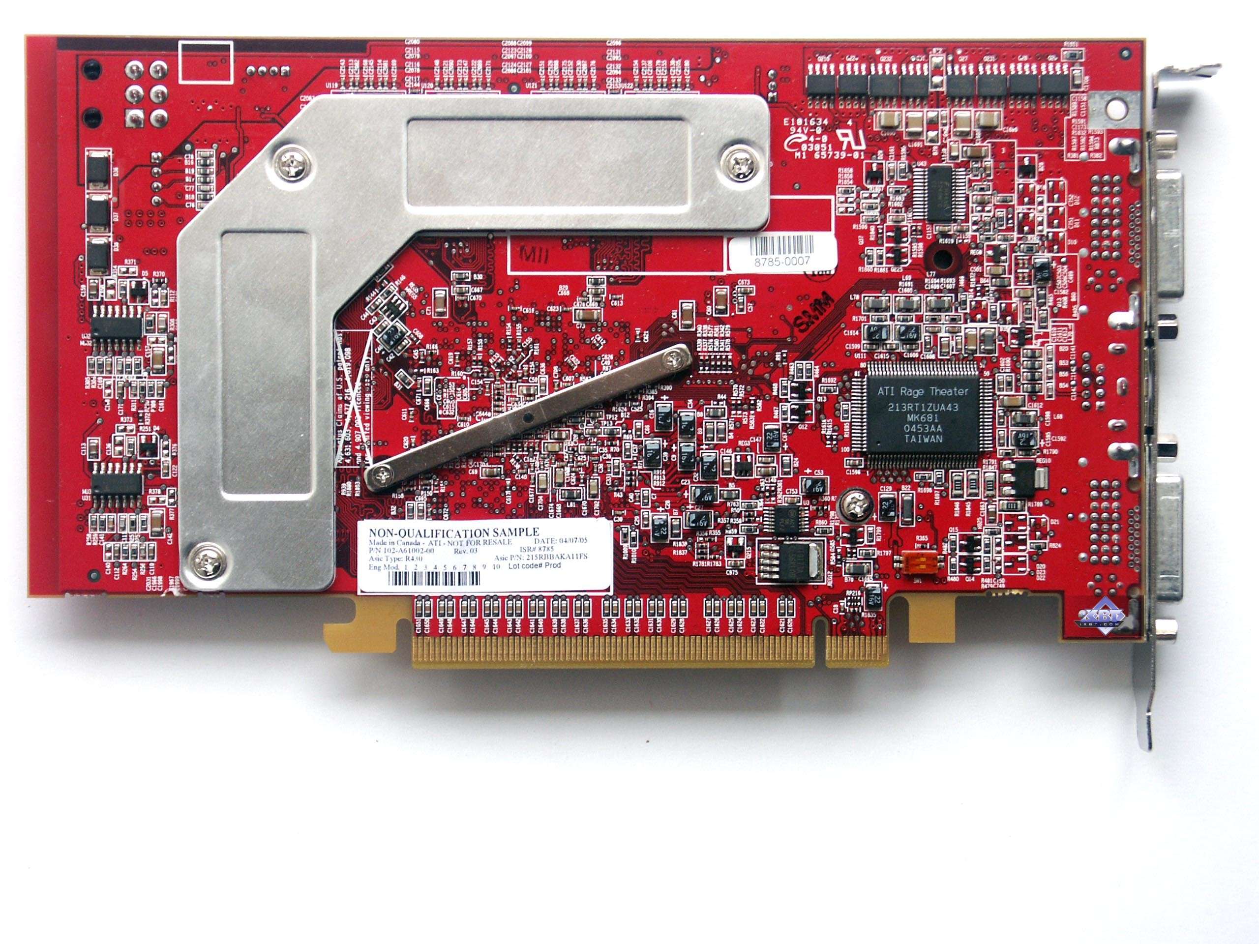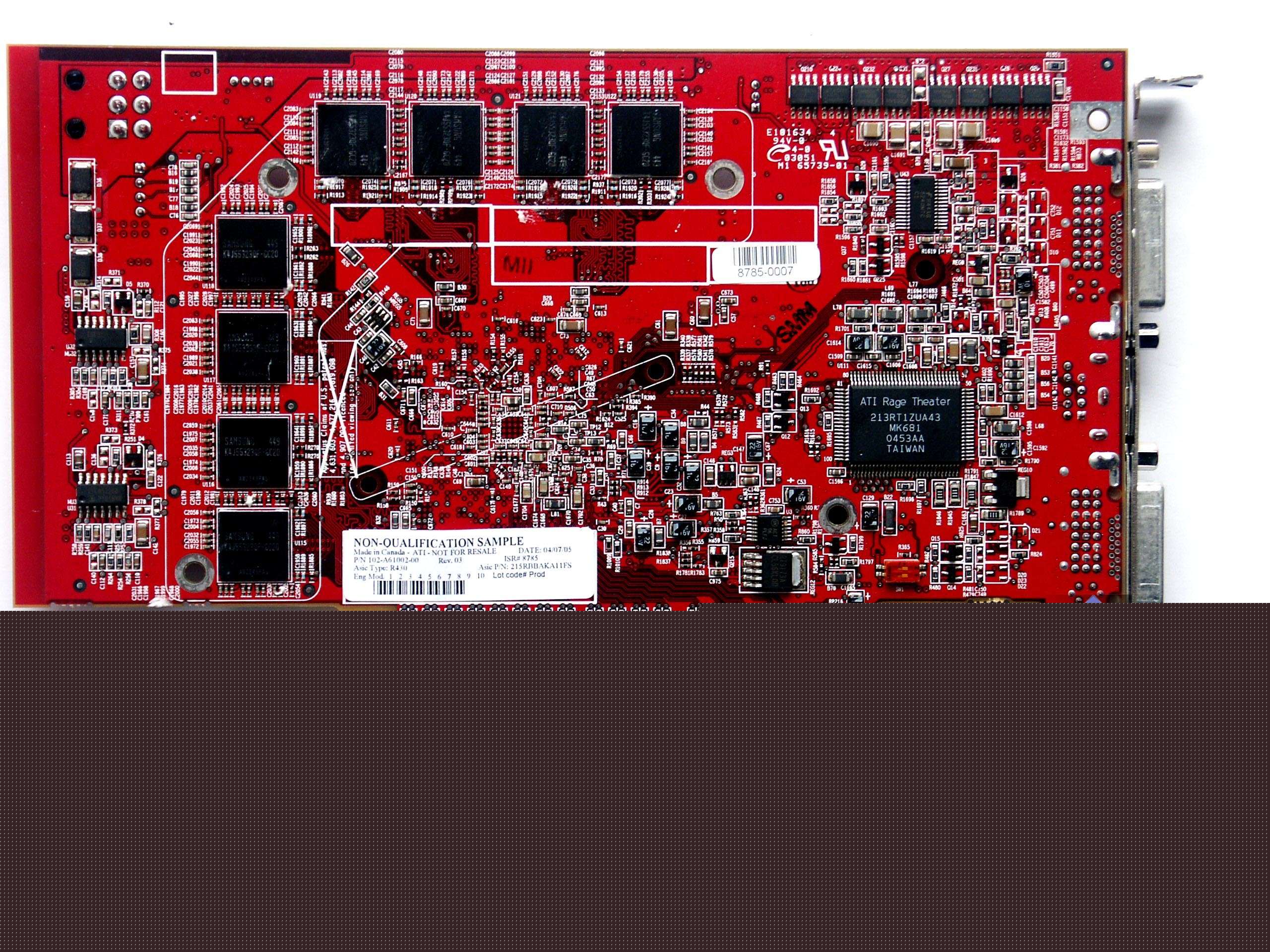 Прекрасно видно, что новинка от своего ранее выпущенного собрата отличается только увеличенным вдвое количеством микросхем памяти, остальное, по сути, без изменений. Благодаря тому, что разводка PCB с самого начала предусматривала возможность установки гнезда для внешнего (дополнительного) питания, проблем с этим не возникло: из-за увеличенного энергопотребления памятью пришлось вернуть обратно снятый ранее на X800 XL 6-пиновый разъем питания, поэтому такие карты потребляют уже больше 75Вт.