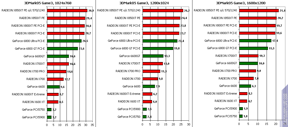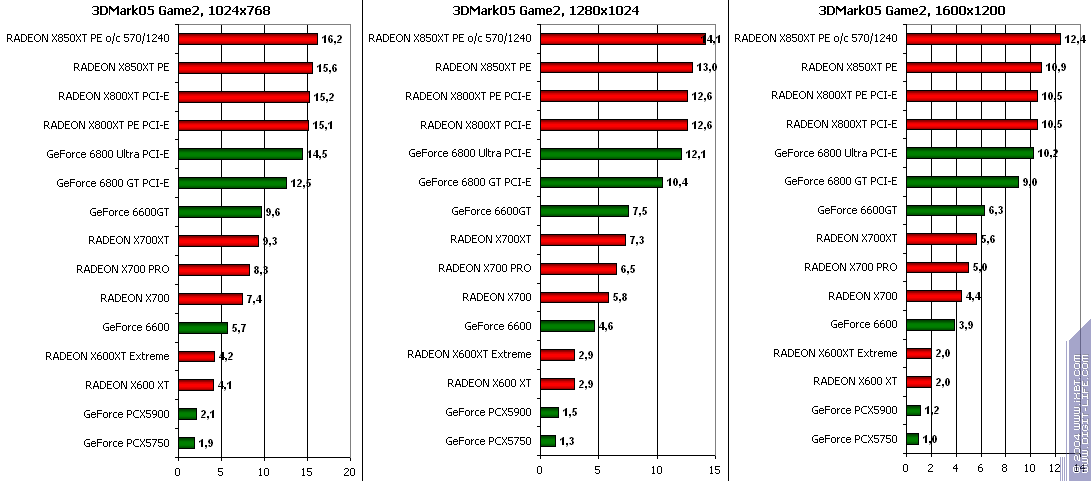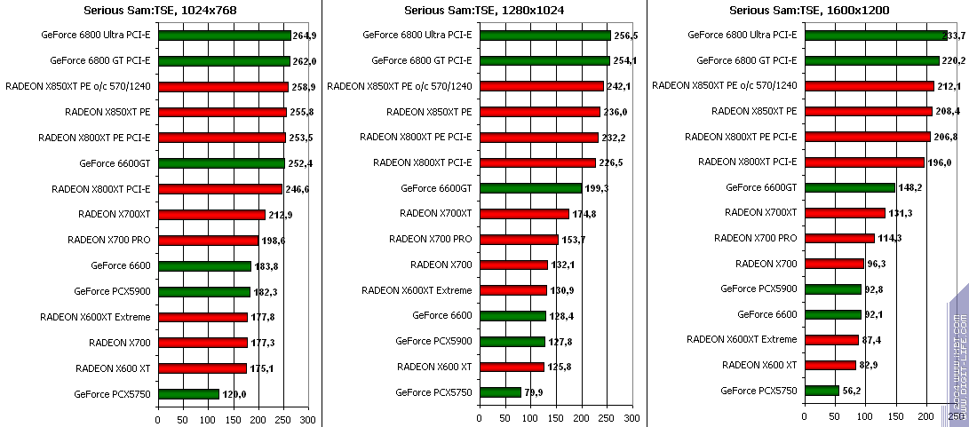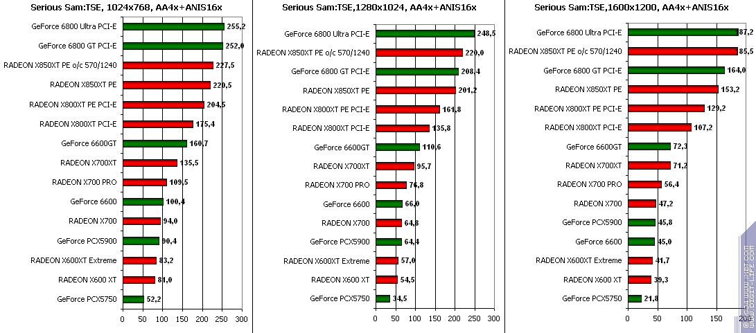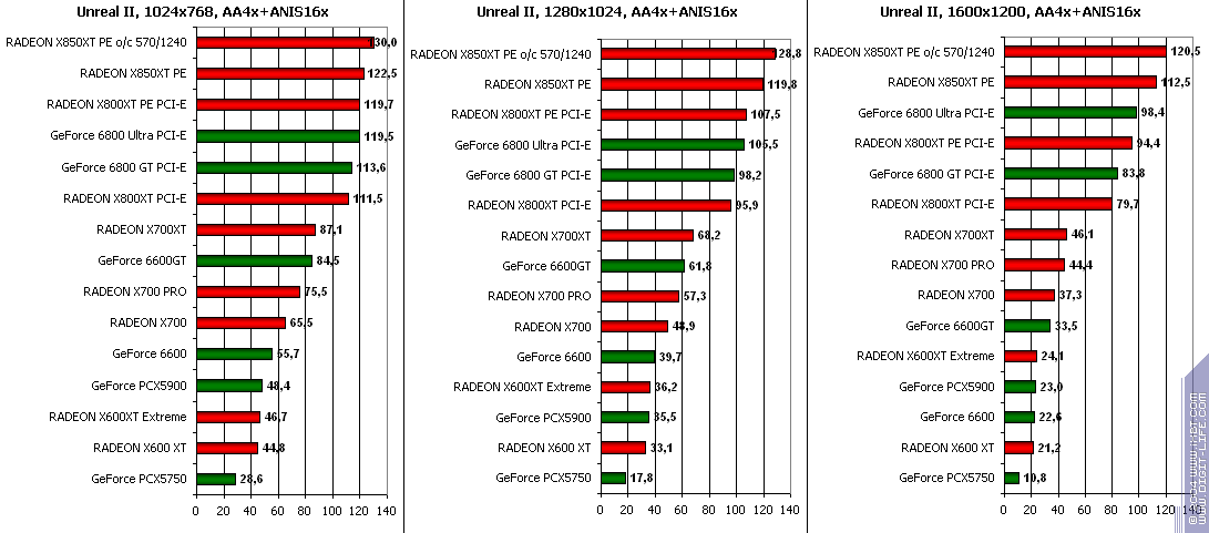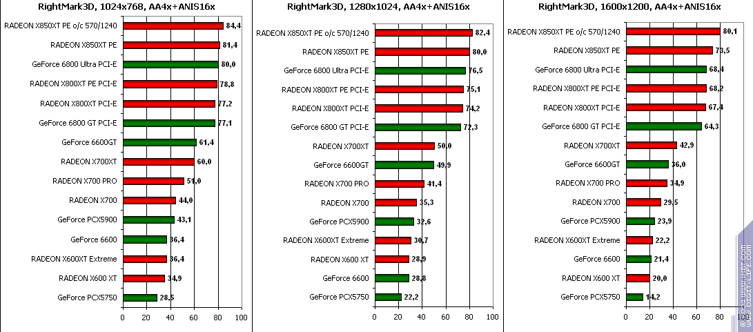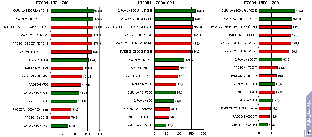 RADEON X850XT PE — против GeForce 6800 Ultra PCI-E аналогично, и даже второй вышел в лидеры.