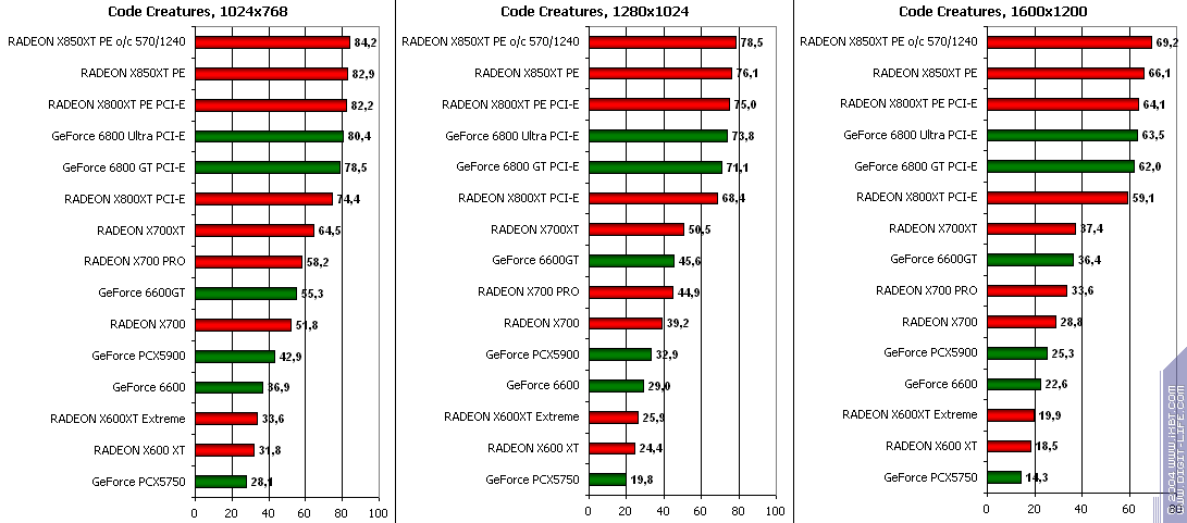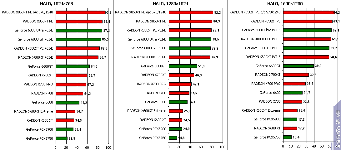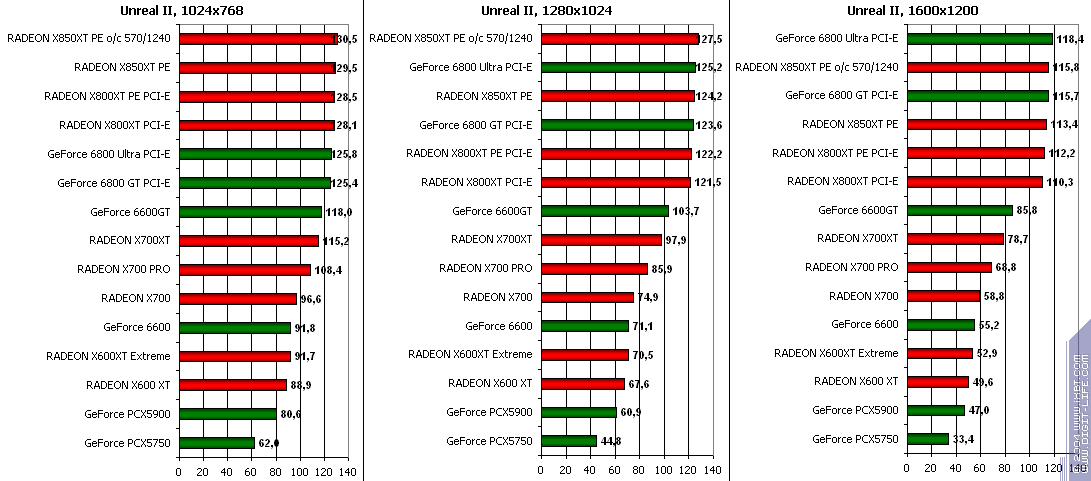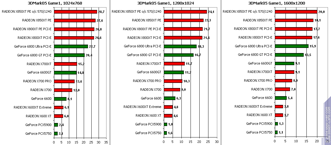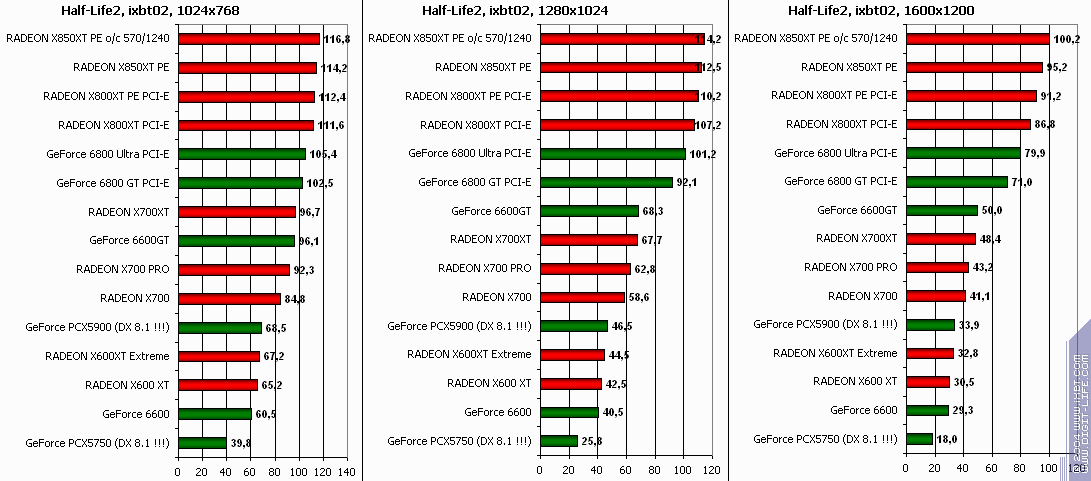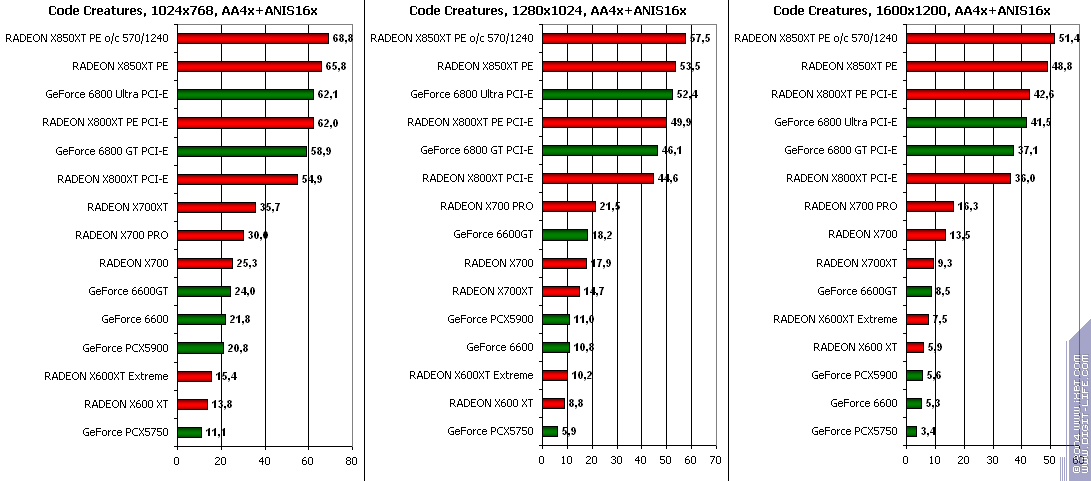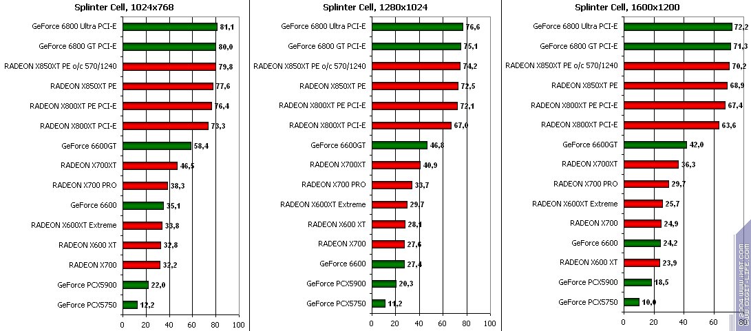 RADEON X850XT PE — против GeForce 6800 Ultra PCI-E аналогично, и даже второй вышел в лидеры.