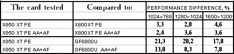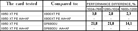 RADEON X850XT PE — против RADEON X800XT PE PCi-E в тяжелых режимах с АА+АФ прирост частот в 20 МГц