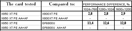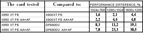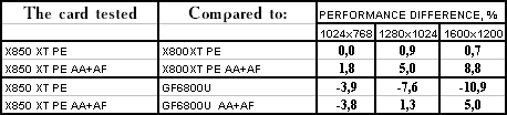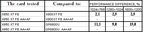 RADEON X850XT PE — против GeForce 6800 Ultra PCI-E примерное равенство, если учитывать маленький