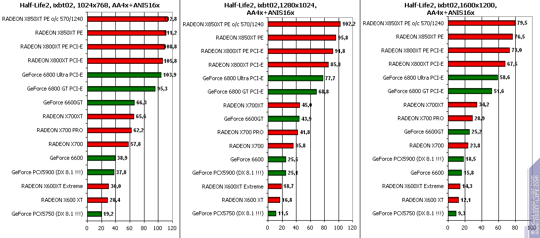RADEON X850XT PE — против GeForce 6800 Ultra PCI-E аналогично.