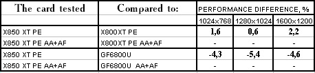 RADEON X850XT PE — против GeForce 6800 Ultra PCI-E поражение.