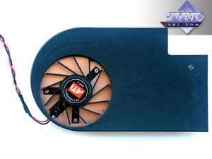 Несмотря на то, что размеры устройства явно меньше, особенно по толщине, удачным это решение назвать трудно, так как в процессе работы под нагрузкой в 3D вентилятор периодически меняет обороты (сказывается перегрев), что отнюдь не комфортно для ушей. Кулер также имеет медный радиатор, помещенный в кожух, но в данном случае турбина гонит воздух уже в обратную сторону — во внутрь системного блока. Для более низкочастотного ядра это приемлемо, хотя думаю, что нагрев карты в целом все равно достаточно велик.