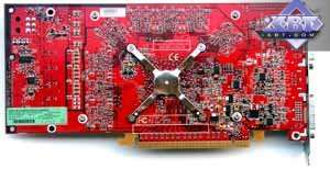 И вот мы видим, что к примерно аналогичному дизайну пришли и специалисты из ATI, сделав карту более длинной (кстати, она полностью равна по размерам GeForce 7800GTX, это демонстрируется в нашем видеоролике ссылки в начале статьи). Микросхемы памяти расположены также полукругом вокруг ядра, силовой блок в хвосте платы.