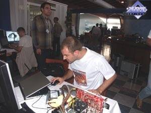 Но это было, оно случилось, вписано в скрижали истории, и уже не вырубить. Теперь, когда канадцы перешли на новый техпроцесс, и решили все же выделить место среди транзисторной массы и на блок SM 3.0 в том числе, уже близок момент, когда DX9.0с в полном объеме будет массово внедряться в новых играх. ATI взяла новый курс, и считает его единственно правильным! (о нем свидетельствует на фото ниже Николай Радовский, представитель ATI в России, показывая рукой на новые горизонты движения. :-) Просто Ленин местного масштаба :-))