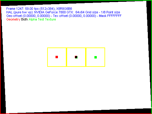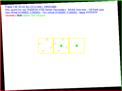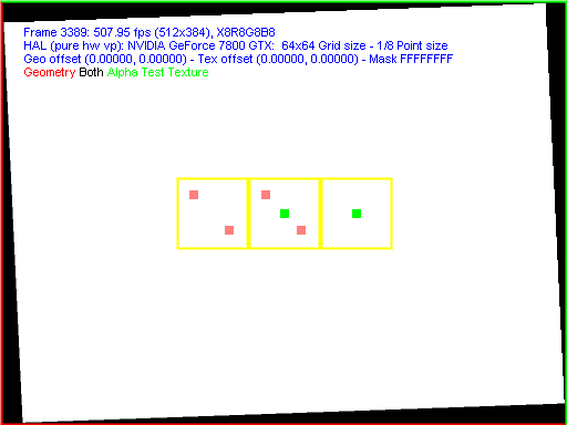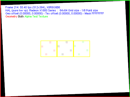 При клике на картинку открывается вся сцена DX9FSAAViewer целиком: на ней можно оценить не только расположение субсэмплов, но и качество сглаживания наклонных линий. Щелкайте мышками :-)