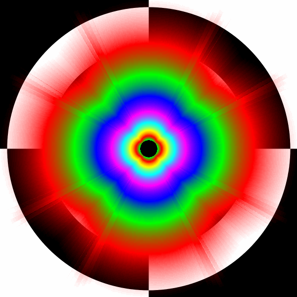 В режиме 16x G70 и обычная анизотропия чипов Radeon ведут себя предсказуемым образом, а вот с HQ-анизотропией R520 происходит нечто странное: «клевер» превращается в «квадрат», а MIP-уровни оказываются «перемешанными» не самым лучшим образом. Впрочем, даже здесь HQ-анизотропия R520 все равно на голову лучше анизотропии своего ближайшего конкурента.