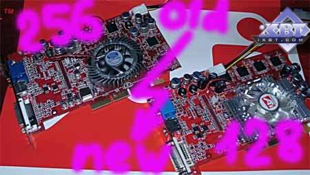 Почему такая интрига? Все очень просто. Посмотрите на материал под номером 8 из списка выше, там шла речь о том, что RADEON 9500 64MB и 128MB сильно отличаются шинами обмена с памятью (в первом случае 128бит, во втором 256бит), поскольку обе карты выполнены на PCB от RADEON 9700, которая предусматривает наличие аппаратной 256битной шины, а 64-х мегабайтная модель получена путем изымания половины микросхем памяти (а следовательно обрезалась и шина обмена с памятью). Вследствие этого RADEON 9500 128MB был намного более популярным, имея как повышенную производительность, так и потенциал по переделке карты в RADEON 9700.