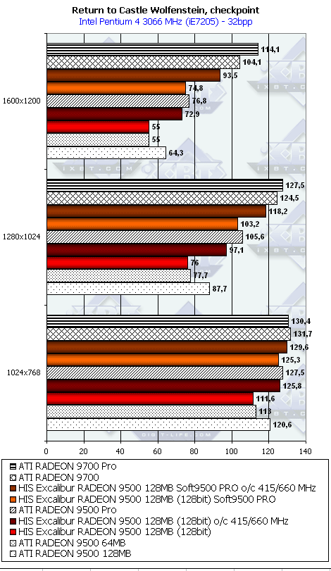 - Return to Castle Wolfenstein (MultiPlayer) (id Software/Activision) OpenGL, мультитекстурирование, Checkpoint-demo, настройки тестирования все на максимально возможном уровне, S3TC OFF, конфигурации можно скачать тут
