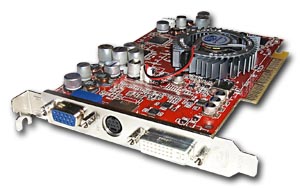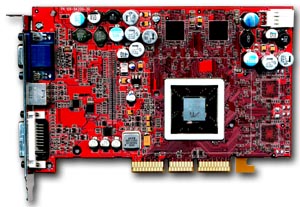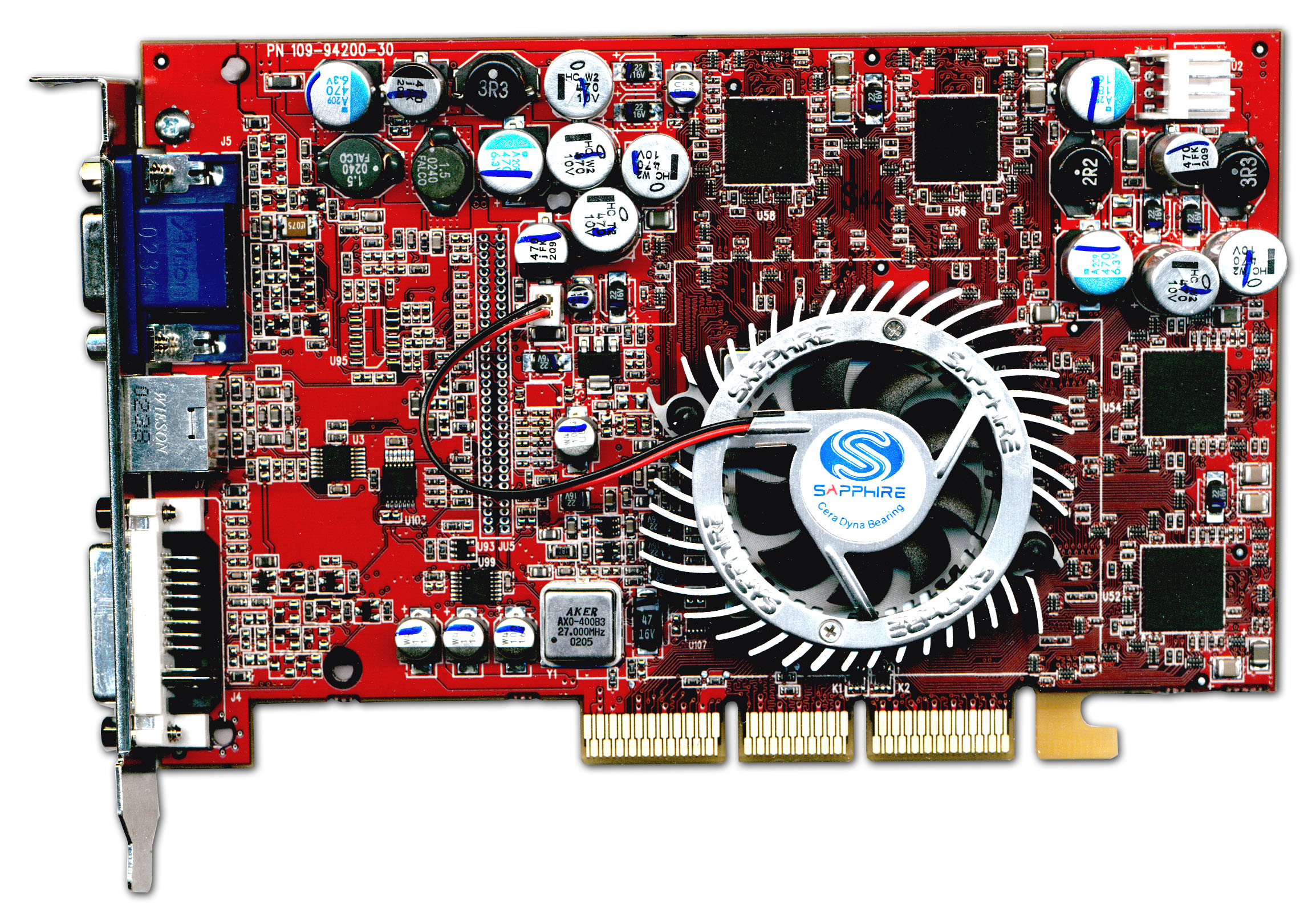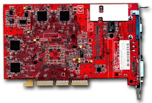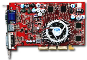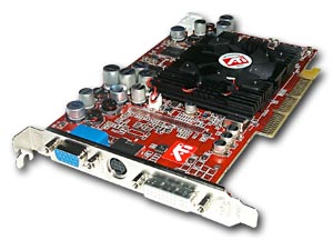 - RADEON 9500 128MB  уникальная карта во всех отношениях: во-первых, пока ее выпускает только Sapphire, во-вторых, она базируется на PCB от R9700, поэтому у нее в наличии 256-битная шина обмена с памятью, что частенько помогает карте при нагрузке АА и/или анизотропией выигрывать сражения, в-третьих, как уже выше было сказано, плата может быть и превращена в полноценный RADEON 9700 (а если и разогнать, то и RADEON 9700 PRO)