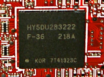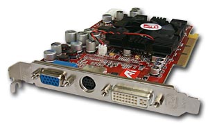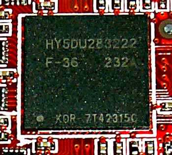 | Карта имеет интерфейс AGP x8/x4, 128 МБ памяти DDR SDRAM, размещенной в 8-ми микросхемах на обеих сторонах PCB. Микросхемы памяти производства Hynix. Время выборки у микросхем памяти 3.6 ns, что соответствует частоте работы 275 (550) МГц, но память тактуется стандартными значениями частот  270 (540) МГц. GPU функционирует также на обычной для R9500 частоте 275 МГц. Шина обмена с памятью  128 bit (аппаратно, но в режиме АА работает сжатие буфера, поэтому можно вести речь о виртуальной 256 bit шине в АА). |  |