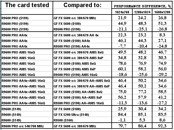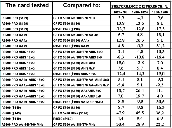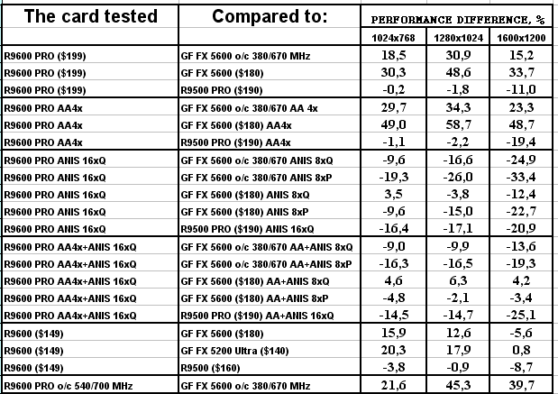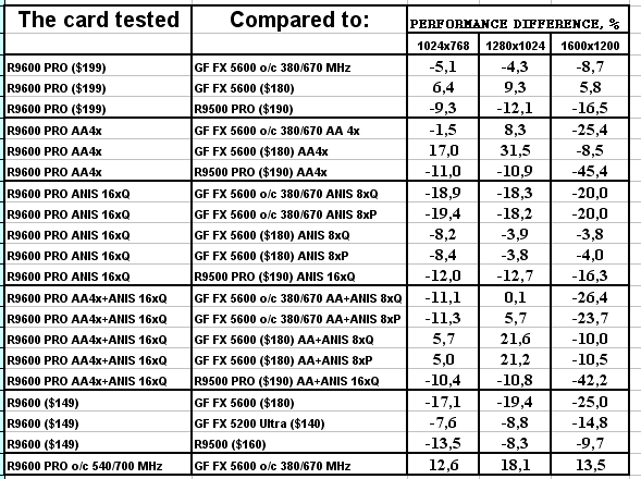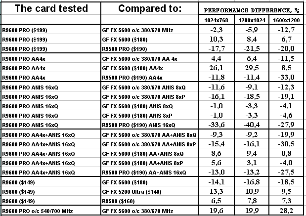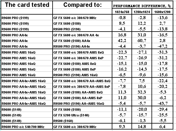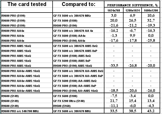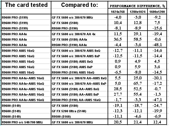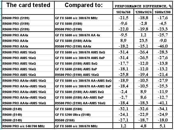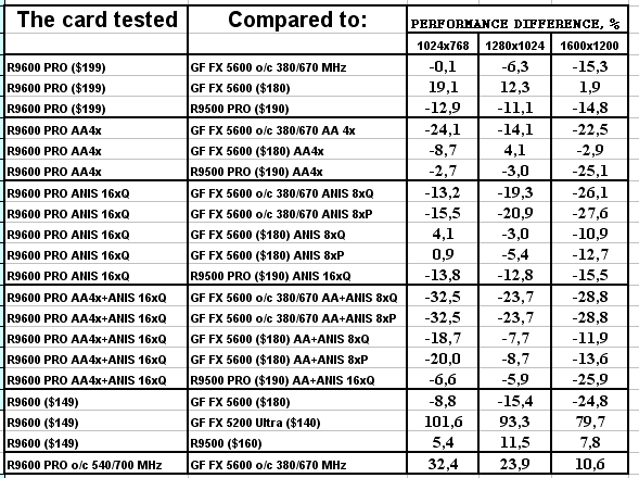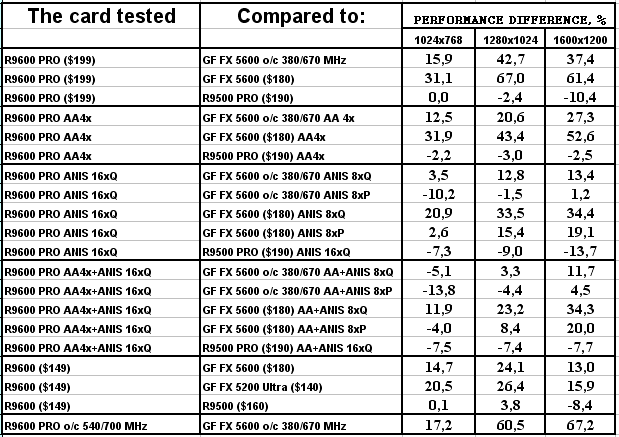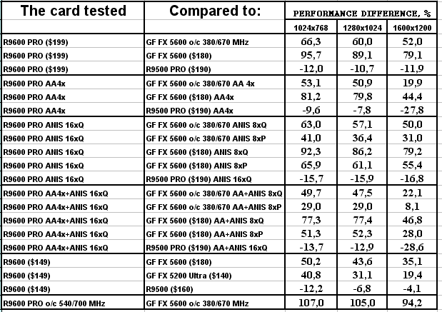 Что касается производительности RADEON 9600 PRO, то выводы очевидны: