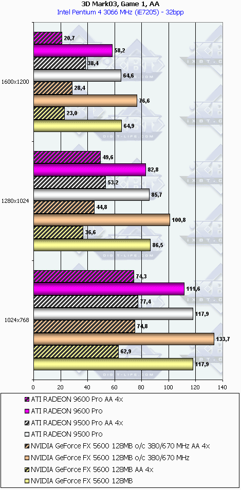 Фактически проигрыш разогнанному 5600, кроме режима с АА. Относительно GF FX 5600 еще как-то карта смотрится, но все же ценовые категории разные.