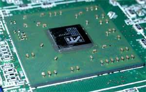 Интересно отметить, что упаковка чипа все же оставлена FCPGA, с открытым кристаллом. Обратим внимание на отсутствие рамки, которая ранее защищала R300 от повреждений.