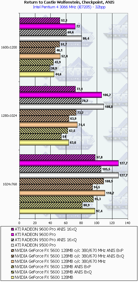 - Return to Castle Wolfenstein (MultiPlayer) (id Software/Activision) OpenGL, мультитекстурирование, Checkpoint-demo, настройки тестирования все на максимально возможном уровне, S3TC OFF, конфигурации можно скачать тут