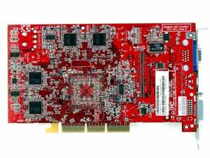 | Карта имеет интерфейс AGP x8/x4/x2, 128 МБ памяти DDR SDRAM, размещенной в 8-ми микросхемах на лицевой и оборотной сторонах PCB. Микросхемы памяти производства Samsung (BGA). Время выборки у микросхем памяти 2.8 ns, что соответствует частоте работы примерно 350 (700) МГц, память работает на частоте 340 (680) МГц. Частота работы GPU  380 MHz, шина обмена с памятью 256бит. |  |