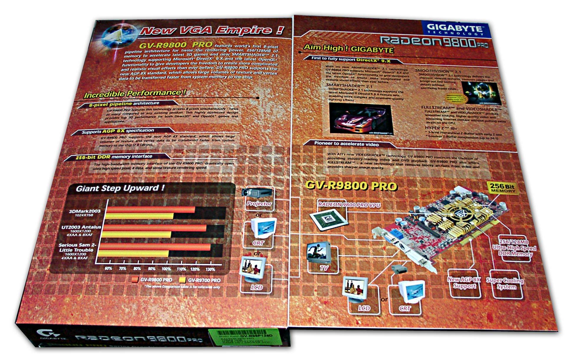 | Connect3D RADEON 9800 PRO 128MB; Gigabyte RADEON 9800 PRO GV-R98P128D; PowerColor RADEON 9800 PRO 128MB | |