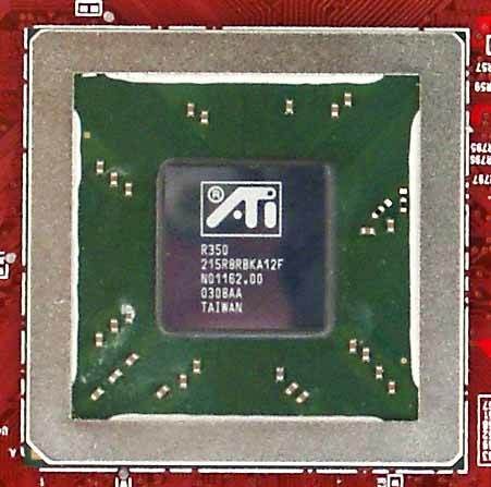Кинем взгляд на сам GPU (VPU) R350, который и является RADEON 9800 PRO. Впрочем, мы уже на него смотрели неоднократно, такая же зеркальная поверхность подложки, тот же FCPGA.