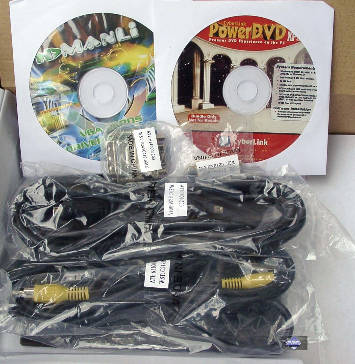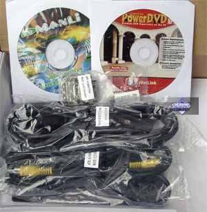 | В комплект поставки входят: руководство пользователя, диск с драйверами и утилитами, PowerDVD, удлинители TV, переходники DVI-to-d-Sub и S-Video-to-RCA, . |  |