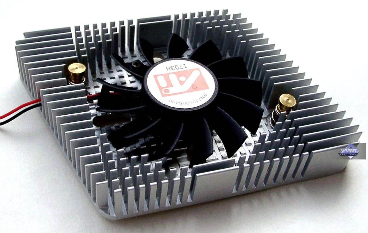Каждая микросхема памяти снабжена отдельным радиатором. И это несмотря на то, что вместо положенных по штату 450 МГц память работает на 350 МГц. Но и в этом случае нагрев очень велик. Да, для полноценной работы на 450 МГц для такой памяти нужна другая PCB (намного более сложная и дорогая) и система охлаждения типа FlowFX. Все это лишний раз подтверждает мои доводы о том, что это чисто маркетинговый выпуск продукта, со спешкой и ради «галочки».