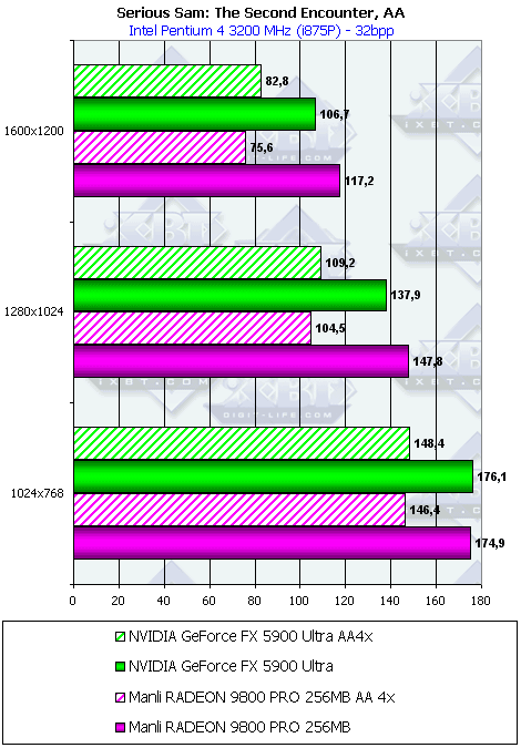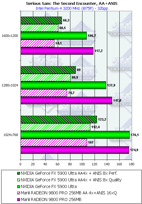 - Serious Sam: The Second Encounter v.1.05 (Croteam/GodGames)  OpenGL, мультитекстурирование, ixbt0703-demo, настройки тестирования: quality, S3TC OFF