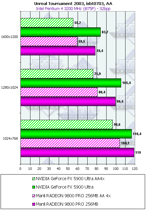 Здесь уже ситуация для RADEON 9800 получше. В целом, конкуренты почти равны.