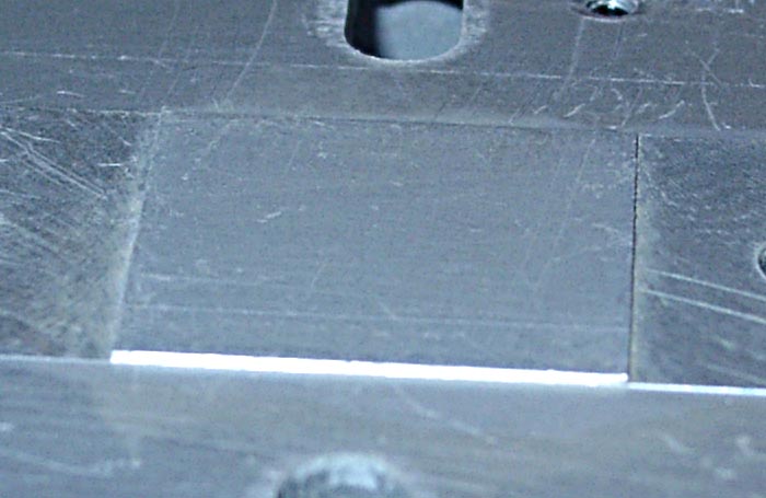 Благодаря тому самому выступу на радиаторе он прижимается к кристаллу без всяких помех, что прекрасно видно на просвет. Правда, надо отметить очень грубую обработку подошвы радиатора, что недопустимо для чипов с открытым кристаллом.