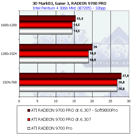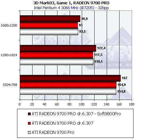 - Оптимизация драйверов от ATI под RADEON 9800 PRO мы наблюдаем и в этом случае.