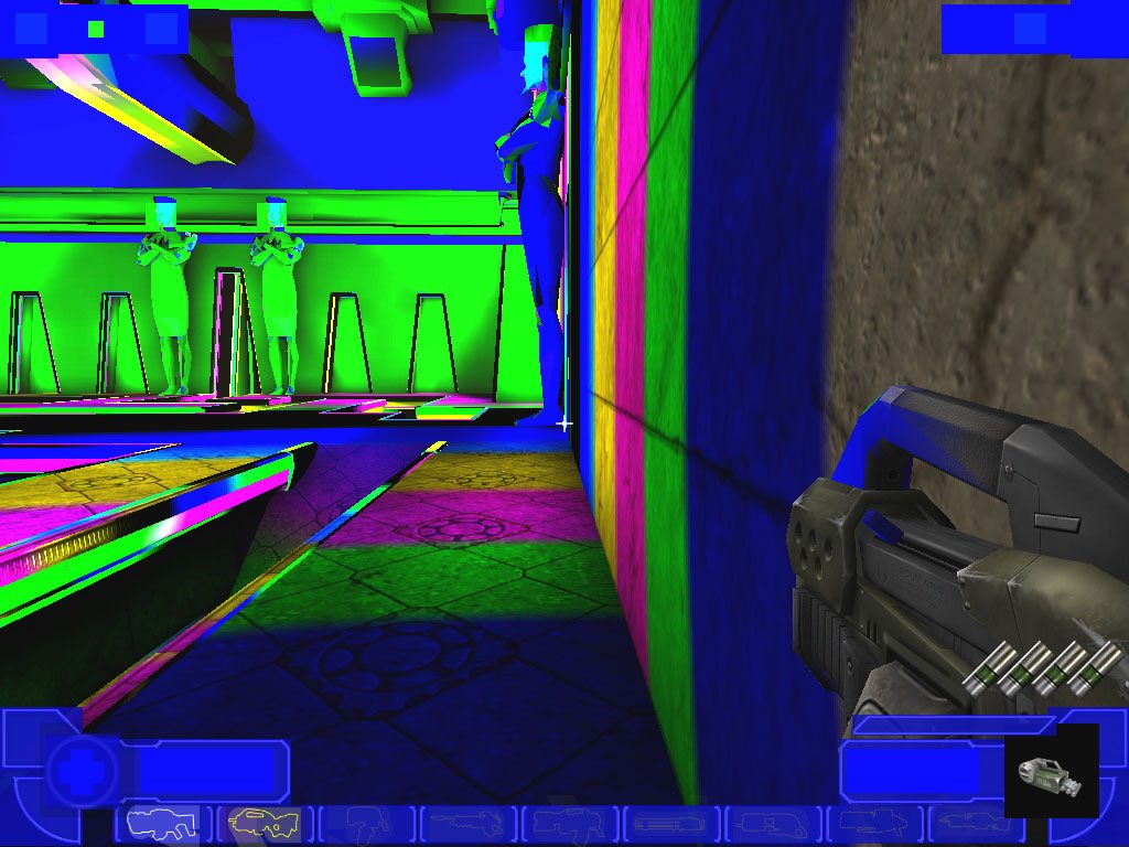 Все вроде логично. К сожалению, подкрашивание MIP-уровней в Unreal II идет очень странно, окрашивается все, начиная со второго уровня в черный цвет. Впрочем, границу между MIP очень хорошо это показывает.