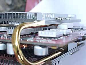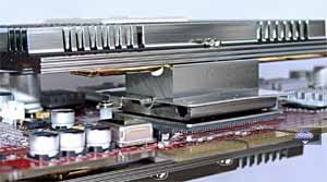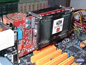 Очень хорошо, что радиаторы расположены относительно высоко на плате, и потом есть гарантия, что даже близко расположенные от AGP-слота кулеры северного моста не станут помехой для установки такой видеокарты.