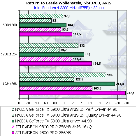 - Return to Castle Wolfenstein (MultiPlayer) (id Software/Activision) OpenGL, мультитекстурирование, ixbt0703-demo, настройки тестирования все на максимально возможном уровне, S3TC OFF, конфигурации можно скачать тут
