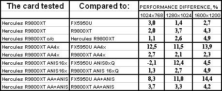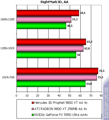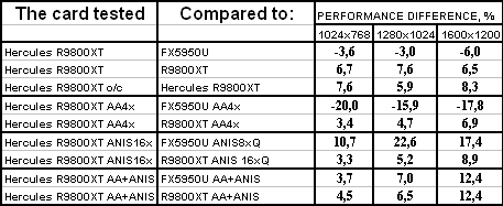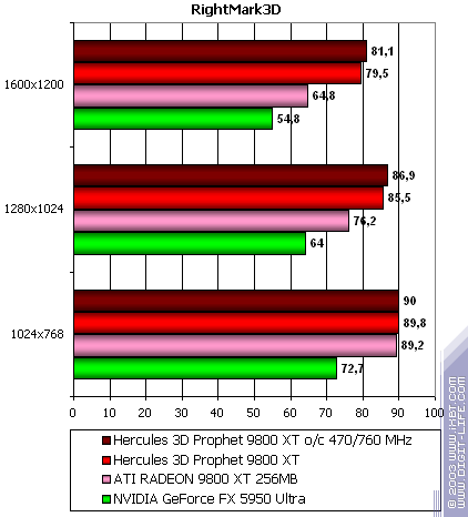 Думаю, что все ясно: на сегодня RADEON 9800 XT в исполнении Hercules является самым мощным ускорителем по сумме баллов. Но с одной оговоркой: если такие частоты в 445 МГц при активном OverDrive будут иметь все карты, а не только данный экземпляр.