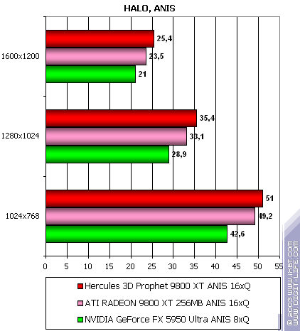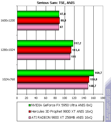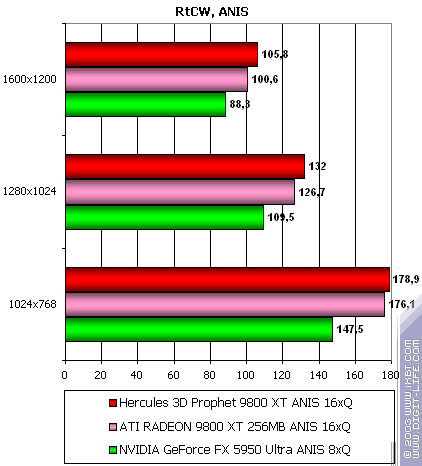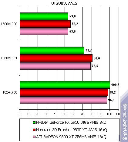 При включенной анизотропии: уверенное лидерство Hercules R9800XT!