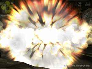 Да, где туман, собранный из множества мелких полигонов, а также многополигональная фигура взрыва, демонстрирующая Overdraw, есть отличия. Причем явно не в пользу ATI. Что это? Заточки? Или ошибки?