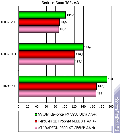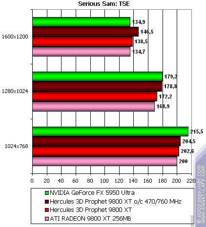 - Serious Sam: The Second Encounter v.1.05 (Croteam/GodGames)  OpenGL, мультитекстурирование, ixbt0703-demo, настройки тестирования: quality, S3TC OFF